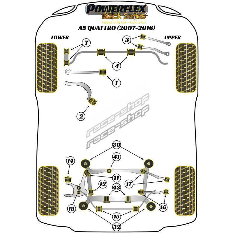 Powerflex vanjski selen blok stražnje bolcne upravljanja Audi A5 Quattro (2007-2016)