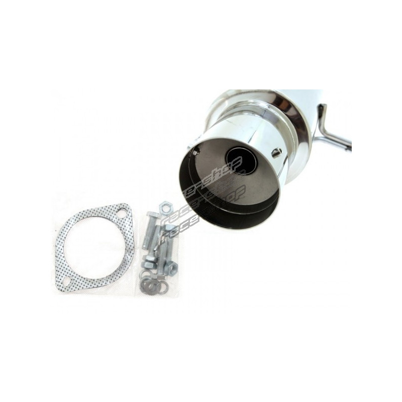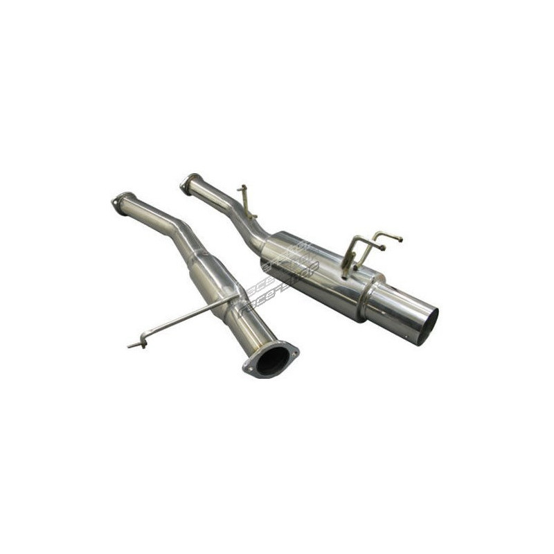Auspuh, cat back za Nissan 200SX S14 SR20DET. Cat back 76mm (3") Ispušni sustav sadrži ispušne cijevi od katalizatora pa na dalje, uključujući krajni prigušivač.Izmjena ispušnih cijevi dovodi do smanjenja protutlaka, zahvaljujući čemu se cilindri brže ispiru, poboljšava se protok ispušnih plinova i dolazi do bržeg paljenja turbopunjača.