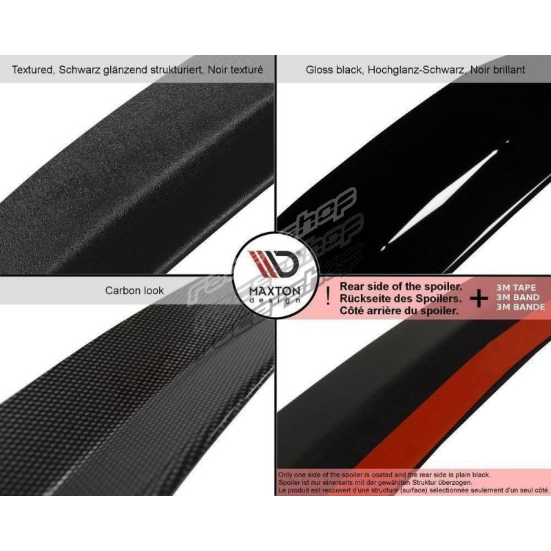 Djeluje vrlo dobro u stvaranju opreme za optički tuning i drugih osnovnih elemenata opremanja vozila. Ovaj spojler se jednostavno postavlja i presvučen je slojem koji odbija UV zračenje.