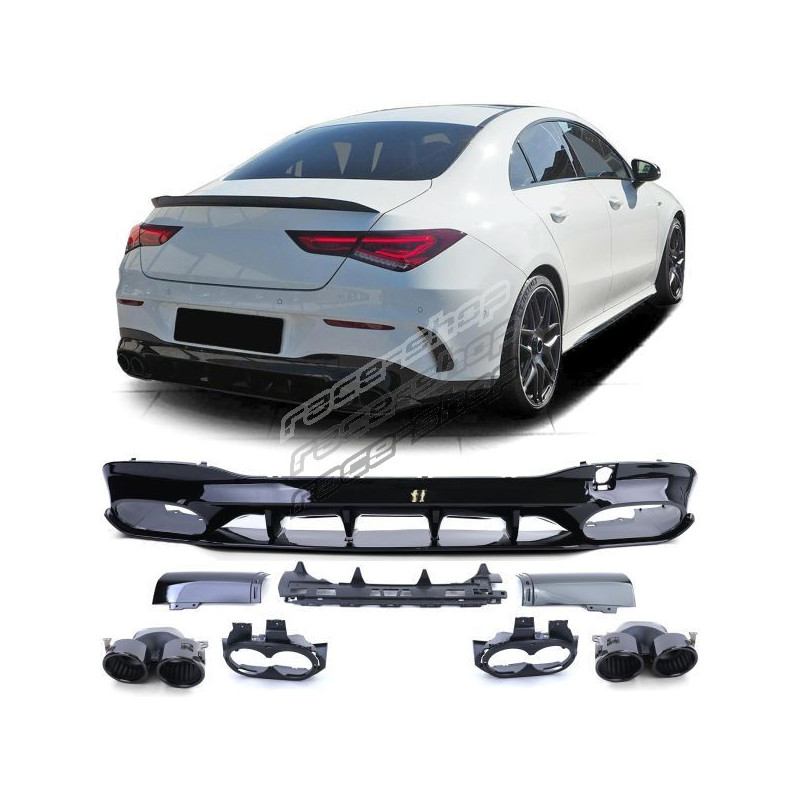 stražnji difuzor crni sjaj + dupla crna završna cijev za Mercedes CLA C118 od 19