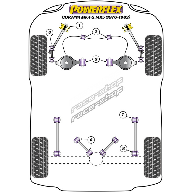 Powerflex Komplet spojnika prednjeg stabilizatora Ford Cortina Mk4,5 (1976-1982)