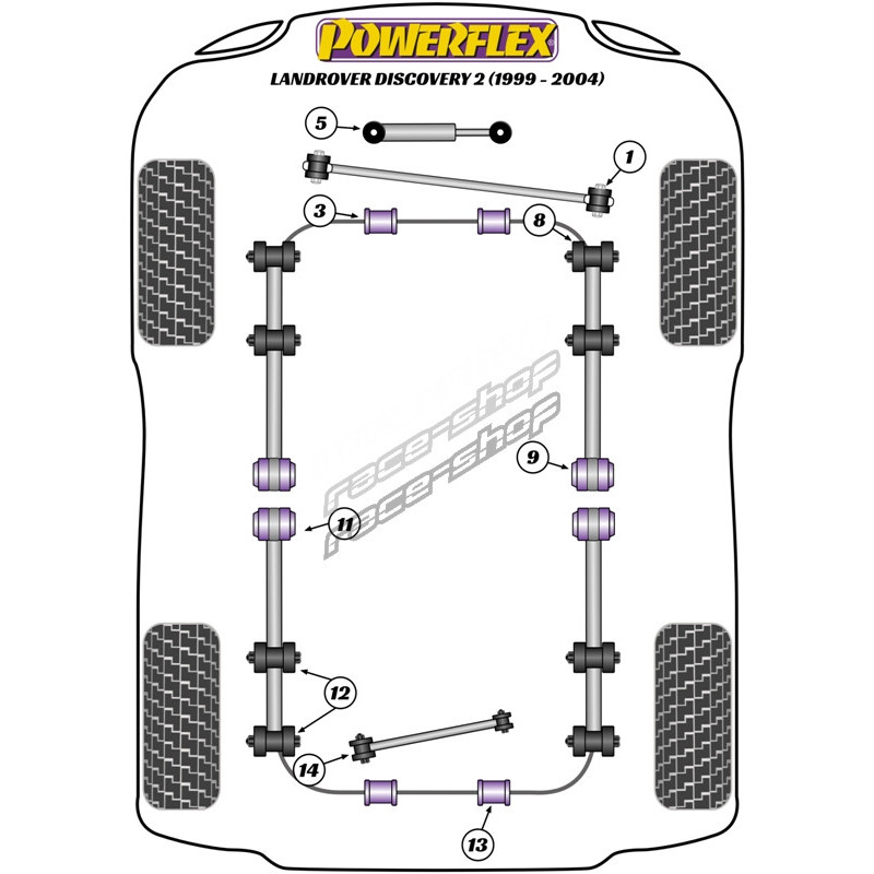 Powerflex Prednji selen blok prednjeg ramena Caster Offset - 50mm Lift Land Rover Discovery 1 (1989-1998)