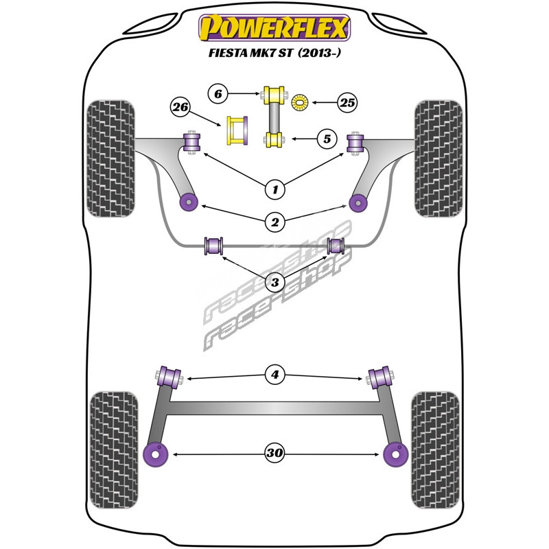 Powerflex Prednja zaštitna šipka prema čahuri šasije 19mm Ford Fiesta Mk7 (2008 - 2017)