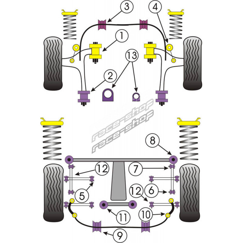 Violet 80A - najkorišteniji materijal. Koristi se u većini područja ovjesa i pruža pravu kombinaciju performansi i usklađenosti.