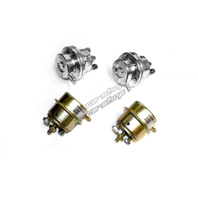 Par zamjenskih klipnih pokretača za Nissan 350Z koji se mogu podesiti tako da odgovaraju operativnim zahtjevima promjenom unutarnjih opruga. Ovi aktuatori su prikladna zamjena za bilo koju APS jednostruku ili dvostruku turbo postavku koja koristi aktuator s uklonjivim nosačem i zatezačem i ravnu šipku od 1" (Na slici su OEM aktuatori prikazani samo za usporedbu. Oni nisu isporučeni ili dostupno za narudžbu). Ako vam nije potreban par aktuatora , tj. za jednu turbo instalaciju, pogledajte FMPAC350ZS ispod.