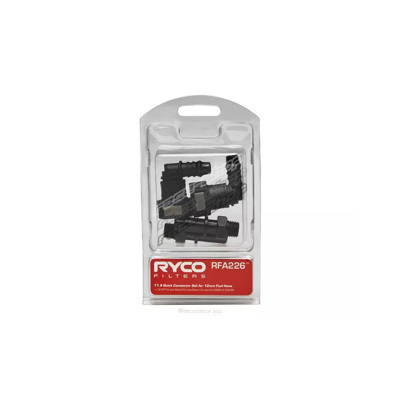 The Ryco Quick Connector Set offers a simple and efficient solution for installing fuel water separators with 1/4 inch NPT thread ports. Designed to connect seamlessly with 12 mm internal diameter fuel hoses, this SAE-compliant kit ensures a secure, leak-resistant fit—ideal for professional and aftermarket fuel system upgrades.
