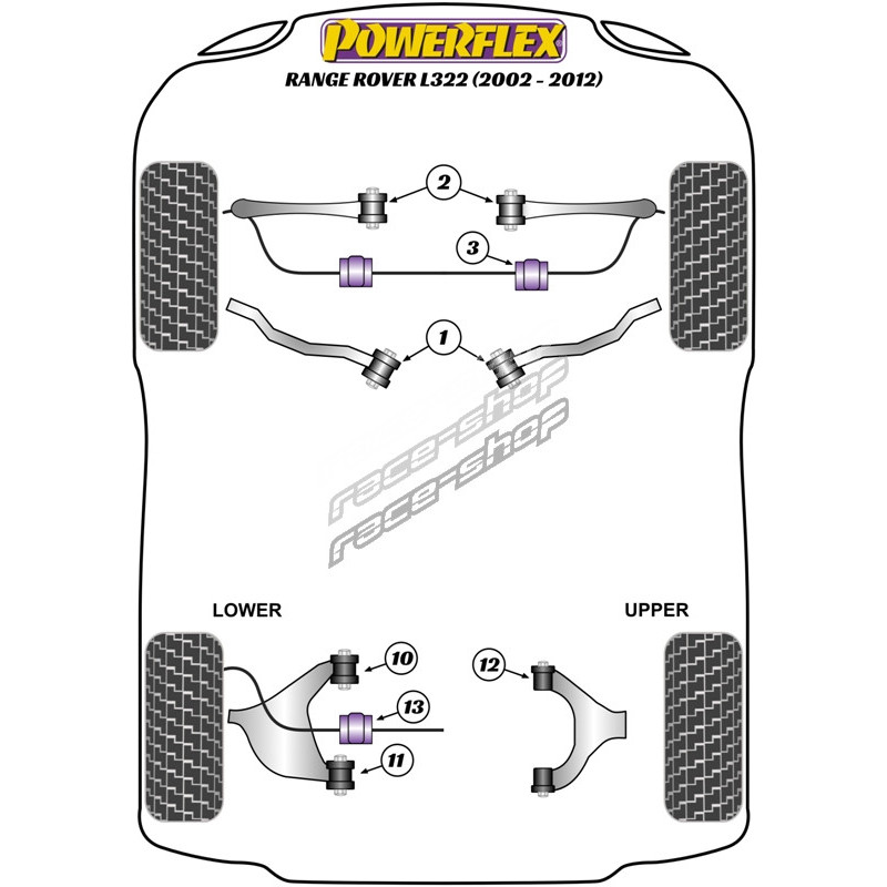 Powerflex Prednji nosilac na kućištu šasije Land Rover Range Rover L322 (2002 - 2012)
