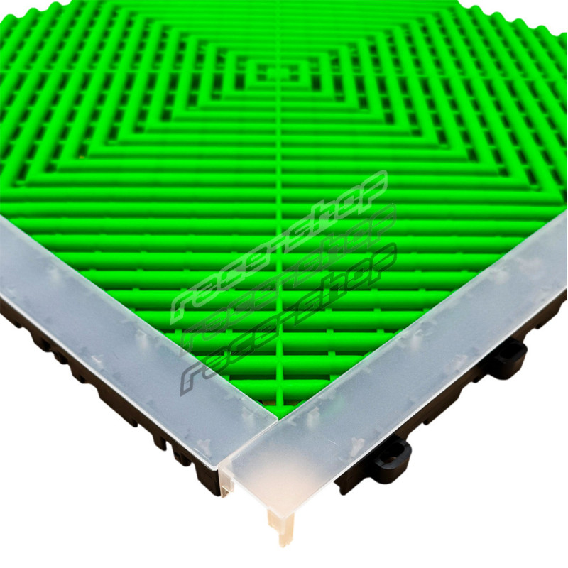 RACES TileGlow podna tračnica je namjenski izrađeno kućište za LED traku dizajnirano za besprijekornu integraciju između RACES modularnih podnih pločica. Izrađena od izdržljive prozirne plastike, postavlja se u ravnini sa spojevima pločica, pružajući čisto i profesionalno rješenje rasvjete bez narušavanja profila površine. Kanal omogućuje brzu ugradnju standardnih LED trakastih svjetala, nudeći ambijentalnu ili usmjerenu rasvjetu koja je idealna za sportske podove, izložbene prostore, maloprodajne prostore i kreativne arhitektonske primjene.