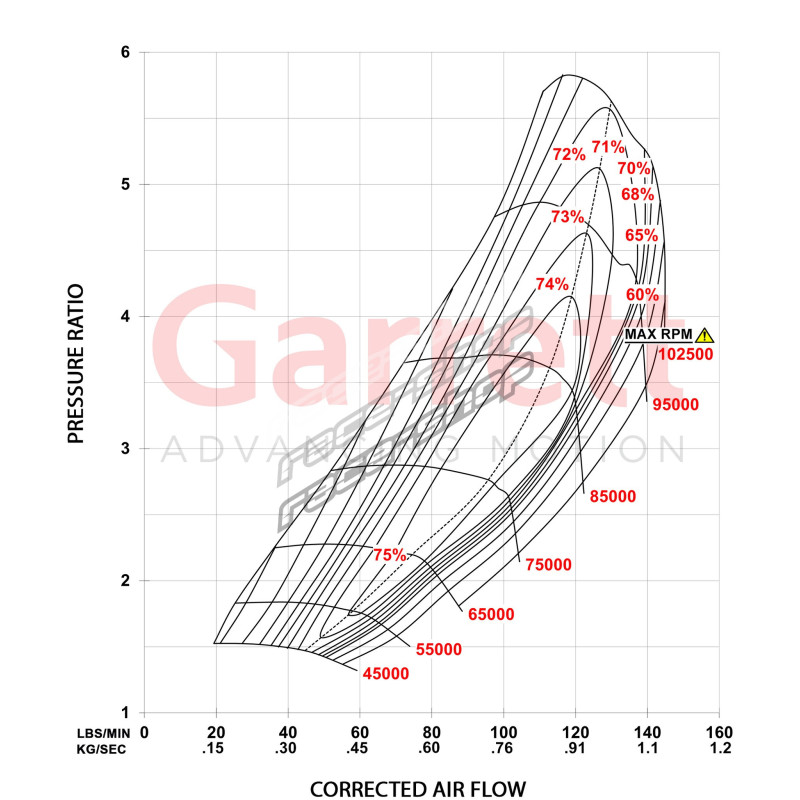 WARNING: Dear customer - G series turbochargers are highly efficient units that don't require a high boost for reaching its limits. Please pay attention that maximum allowable turbocharger speed is 165krpm ( G series ) . The use of this product above max turbocharger speed is at the owner’s risk, and can result in damage and premature failure. To protect the turbocharger from overspeed when operating a speed sensor, part numbers 781328-0004 (single speed sensor that should be connected) or GARRETT G-SMART MODULE ( Module | Harness | Flange Speed Sensor G-Series ) must be fitted and monitored during fine and tune as well as with use of the unit. Missing of the sensors or RPM data will void warranty on product.