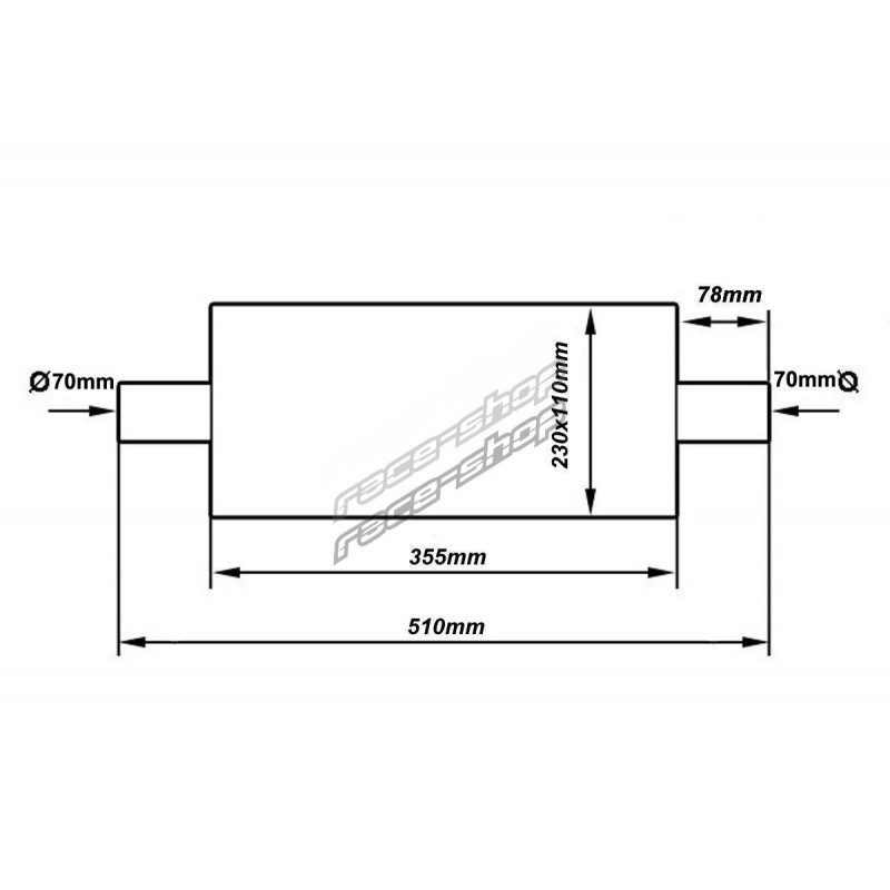 Srednji prigušivaš od nehrđajućeg čelika RACES 25, ulaz/izlaz 2,75" (70mm)