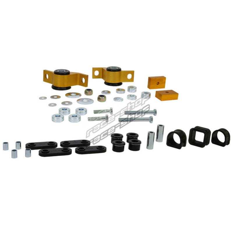 Spajanjem proizvoda za ključeve, poravnanje i geometriju u jedno rješenje, Whiteline Essential Kits pružaju učinkovita poboljšanja upravljanja koja jednostavno aktiviraju više prianjanja. Essentials uključuju poznati prednji anti-lift/caster komplet, komplet mjenjača s pozitivnim prebacivanjem, preciznu letvu upravljanja i čahure upravljačkih ramena koje vašem vozilu pružaju upravljanje poput kartinga i sljedeću razinu prianjanja.